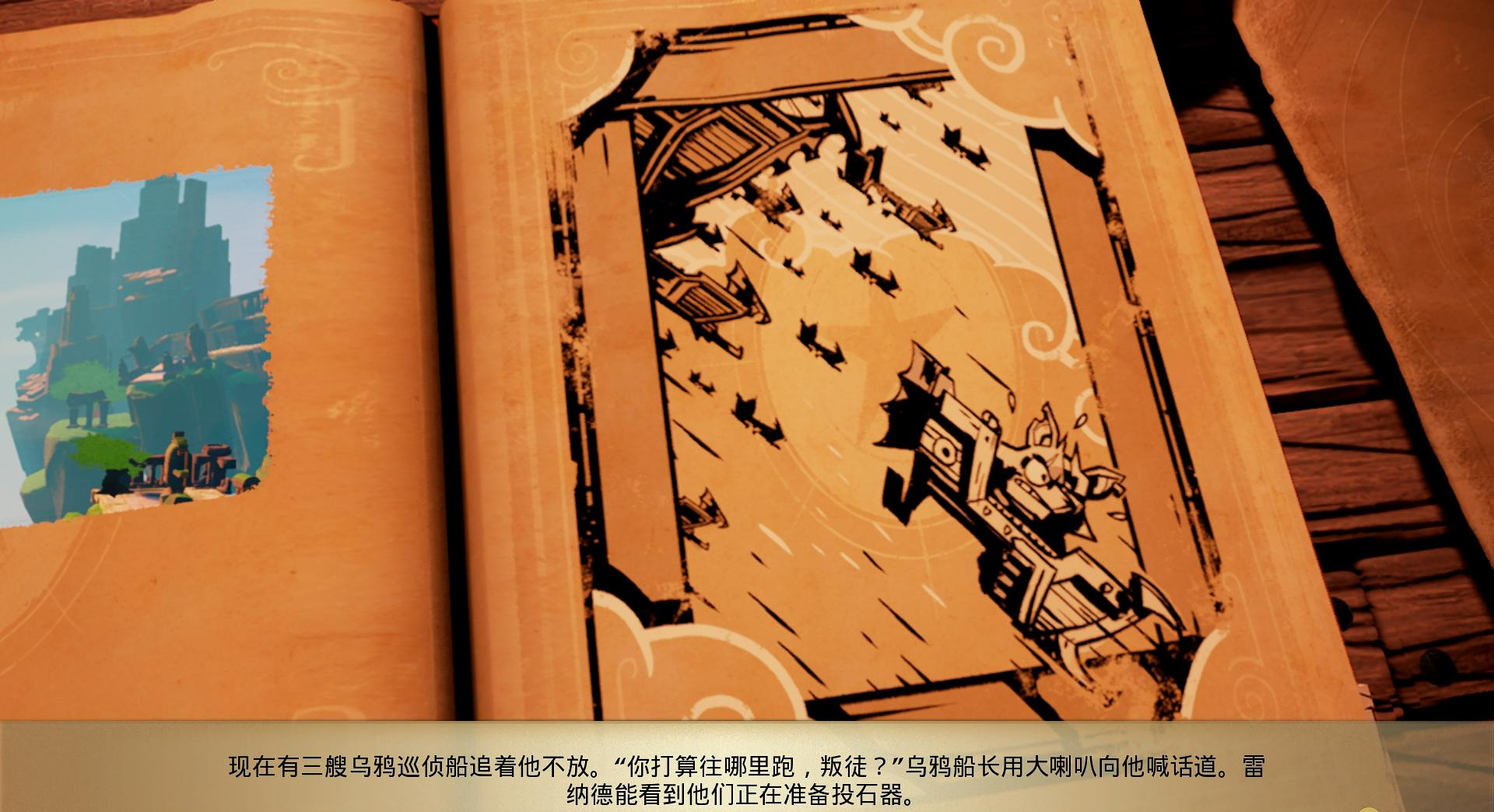 此时在数个岛屿的东面出现了叛军的舰队,可是叛军的飞船也快被击倒,这时候雷纳多打算改变一下游戏方式。他把飞船开往深渊,他能够感受到喷气流,此时乌鸦们都被摆脱了。