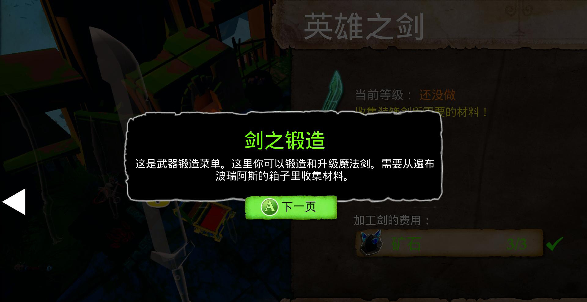 先去到门的左侧,搜刮箱子(1/1)可以获得铸造材料,然后点击工具车,铸造一把英雄剑,然后用英雄剑打开挡路的门。