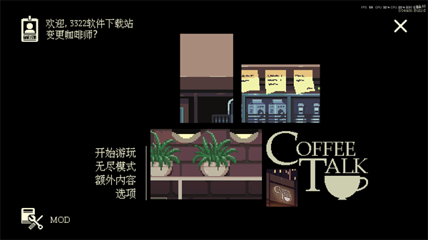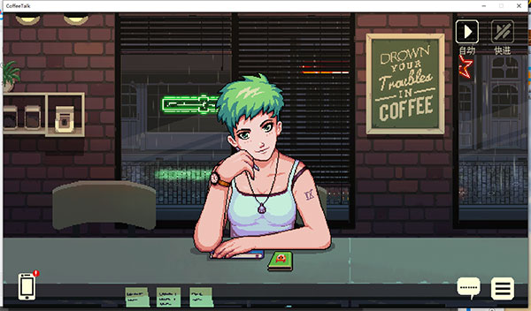 咖啡谈话(Coffee Talk)是由Toge Productions制作发行的一款以咖啡师的角度倾听顾客的故事并为其制作暖饮的模拟游戏。游戏以一个全新的题材来描述一个一个奇幻色彩的现代社会,在游戏中你作为一家咖啡店的老板,游戏进行是会有许多的人来向你述说他们的故事,但是不只是人类身上发生的故事哦!咖啡谈话游戏采用了细腻的像素风格,形象地刻画了多个奇幻的种族的人物,并且这些不同种了的人物身上会有不同的故事,而已所需要做的就是向他们伸出援手,你要用你独特的帮助方式也就是帮他们调制咖啡,你需要根据不同人物故事来调制不同的咖啡或者其他饮料,以此来慰藉他们的心灵。整体来说,咖啡谈话游戏从一个别样的角度展现了现代社会大多数人的现实情境,游戏里你会有一场放松身心,发人深省的游戏体验。
