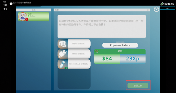4、查看工作内容以及工作奖励,点击屏幕右下方的“接收工作”即可。