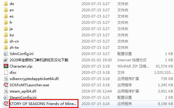 2、双击STORY OF SEASONS Friends of Mineral Town.exe文件,就可以启动游戏了。