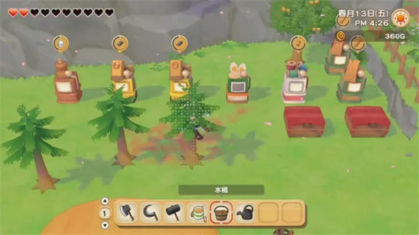 使用经营牧场获得的金钱升级斧头、锄头、洒水壶等工具,会有提高一次耕地的面积等等效果,可以更加方便地开拓牧场、享受牧场生活