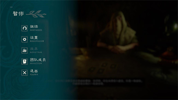 此界面则只包含继续、设置(包含操作、图形、声音等设置)、放弃、团队成员、退出。