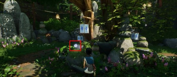 穿过门即可在下一片区域的左边看到这个花神社,引导灵魂到腐坏部分上并将其净化。旁边的水桶里可以找到眼泪。