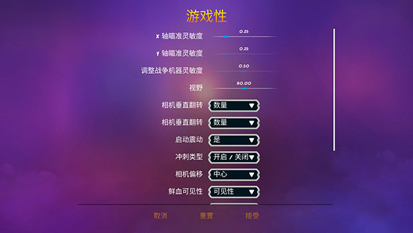 5、在基础设置当中,提供了视野、灵敏度、震动等属性的调节;