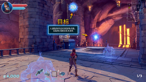 画面中间的蓝点为裂隙点数,当兽人冲进裂隙时就会扣除裂隙点数,扣完则关卡失败