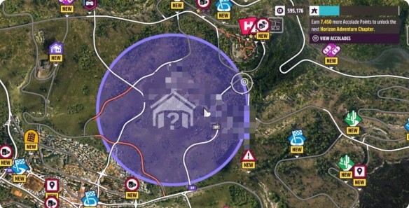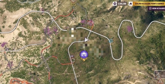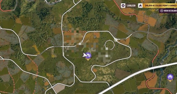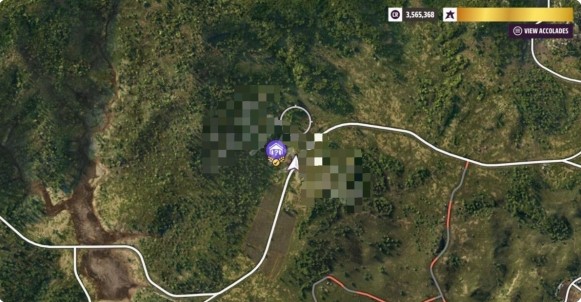 这个车库宝物比较难找,虽然有路通向这里,但附近的路线都很长,而且周围还有很多树林,很容易迷路。在山边的森林深处多转几圈应该就能找到。前往下图所示位置,在向左拐之前应该就能看到一条土路。