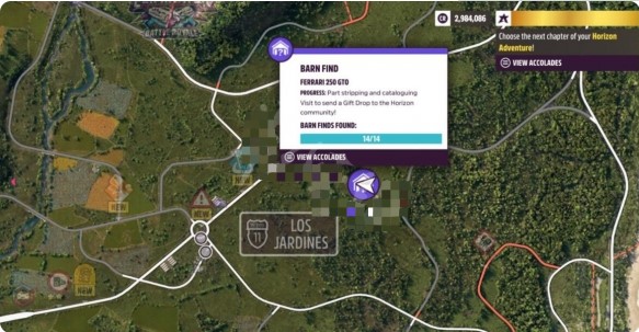 接下来又是一辆非常经典的车。位于El Estadio Horizon东部附近的田地中。车库的大门朝西,所以从北向南行驶的时候注意看着点左边。这里的路呈网格状,在这片区域中央多转几圈就能找到。车库藏在一些小树后边,附近还有一个蓝色的棚子。