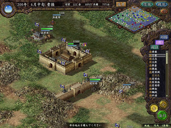 3、一年有36个回合,每回合两个阶段(战略面、进行面)。进行面时,我方武将会根据战略面所下的指令执行命令。此时完全无法变更命令。