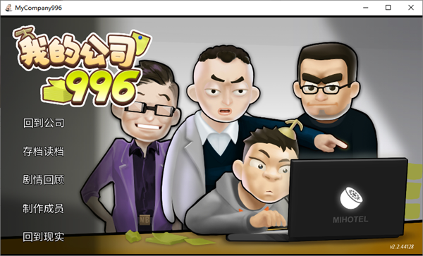 《我的公司996》是一款融合了众多互联网公司血泪经历,讲述了小型创业公司辛酸历程的剧情模拟游戏。其全部内容皆由妖风工作室的几名成员利用业余时间原创开发,历时近2年、10万字主线剧本、20余种迥异结局、100多个隐藏成就,我们不玩梗,因为我们自己就是梗。