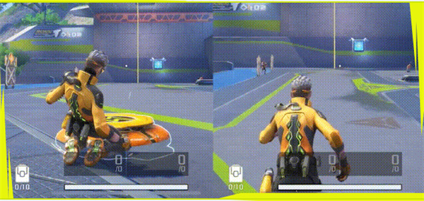 滑铲状态下使用弹力跳板可以跳得更远。弹力跳板可以帮助瑞曼和队友快速接近/远离敌人,或到达一般英雄无法到达的高点,并且可以凭借二段跳打乱敌人的瞄准节奏。