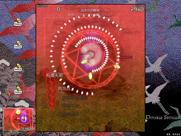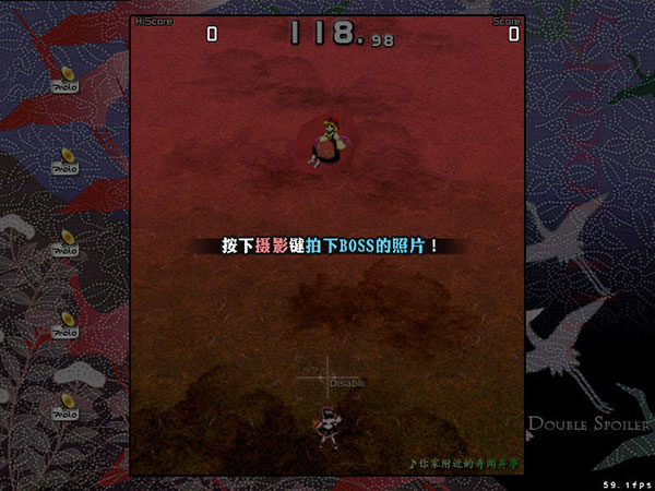 3、若果成功拍摄到头目的面貌,将会视为一次成功的拍照,获得得分。拍照范围内的敌弹大小、数量或是速度都能决定所得的分数。若能在头目展开持续时间极短的魔法阵时对之拍照,取得的分数会更高。还有各种因素,如头目是否靠近镜头中央、自机距离头目的距离等,都会决定带来的额外得分等