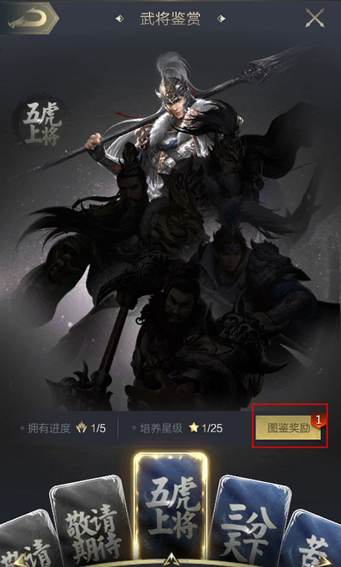 2、武将有着各种图鉴内容,比如五虎上将、三分天下的等,解锁图鉴还能领取丰富奖励。