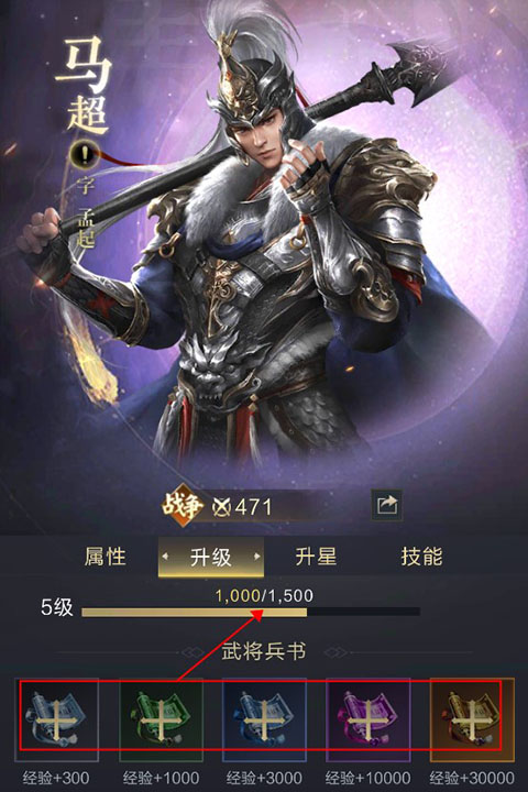 1、玩家可以通过使用经验书给武将提升等级,增加属性战力。