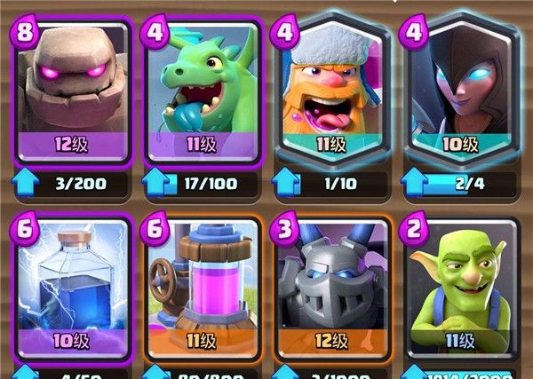 相信很多人都被石头人和暗夜女巫,这样的推进组合直接一波过,虽然此时也是时过境迁,但是高血量的石头人和一个人就能推掉一个塔的暗夜女巫,再加上樵夫的狂暴,即使现在也是一个非常强的组合,由于暗夜石头人的种类有点多,但是大多数的核心都是以,石头人+暗夜女巫+狂暴樵夫的组合,所以今天,我就为大家带来三套以此为核心的卡组。