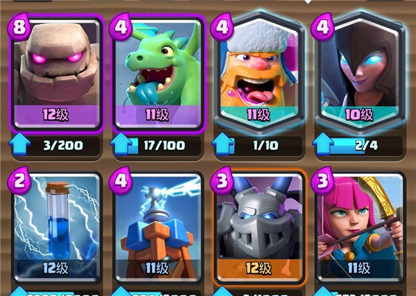 第三种就是带电塔的用这套的时候尽量不要主动出击,利用电塔+重甲亡灵+暗夜女巫构成的三角防御线,来赚取费用差,尽量拖到对己方极为有利的双倍圣水的时间即使双方的防御塔血量差很大也不要灰心,暗夜女巫和樵夫的推进能力,一定会让你大吃一惊的。