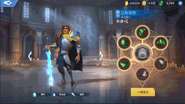 英灵升阶可以提升英灵的多项属性值。激活符文需要使用时光之井中产出的升阶材料。每激活一个符文都可以获得属性提升(物攻、法攻、物防、法防等),激活6个符文后,可使用金币完成一次升阶,获得带兵数量提升。