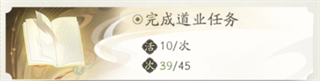 首日完成一个道业任务可以增加10活跃度,活跃度上限450。划重点了!道业任务是做满首日日常活跃度的关键。右上角的任务栏中,找到一个“道”字开头的任务点击里面就是道业任务。