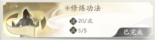 每日修炼功法上限为5次,单次增加活跃度20,活跃度上限100。