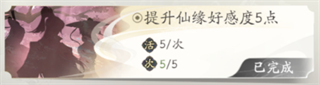 每日给仙缘NPC送礼5次,单次增加活跃度5,活跃度上限25。(培养仙缘还能获得对应角色送出的珍稀道具)
