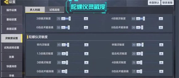 1、镜头灵敏度:是指不开镜时镜头的转动速度,在训练场练习的时候将镜头从左往右滑,能够一次转动120度到180度即可,以下是镜头调灵敏度: