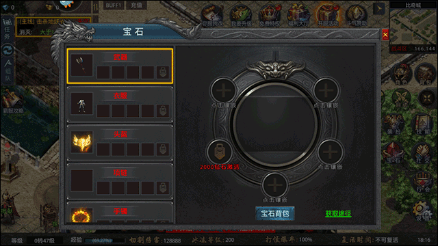 3、这里玩家可以为人物镶嵌宝石和和其它翅膀;