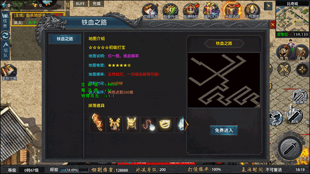 3、所有地图免费进入,激战BOSS,爆率全开满屏光柱,自由交易散人打金!