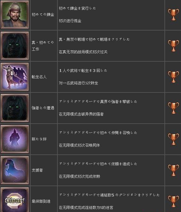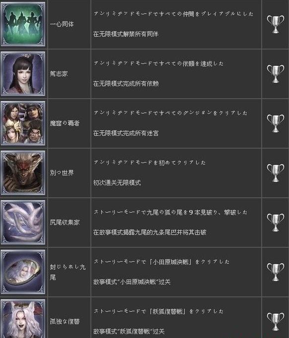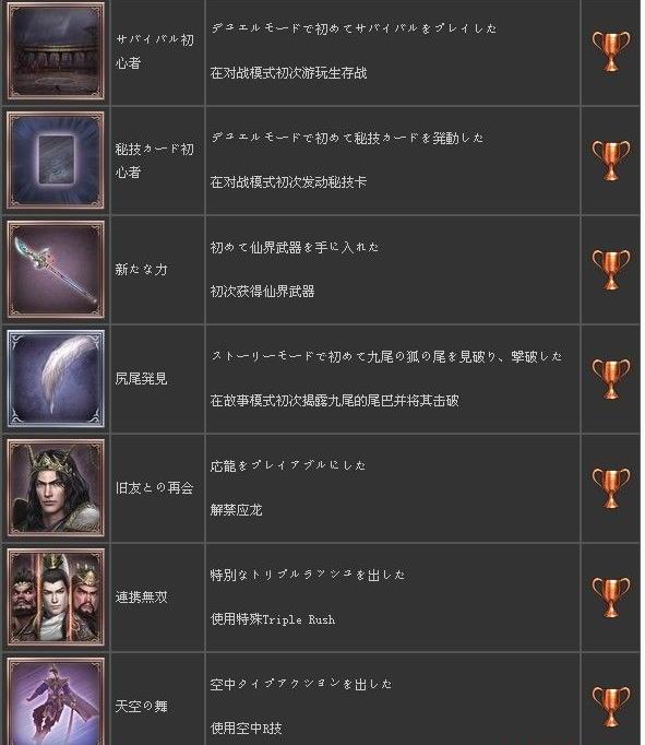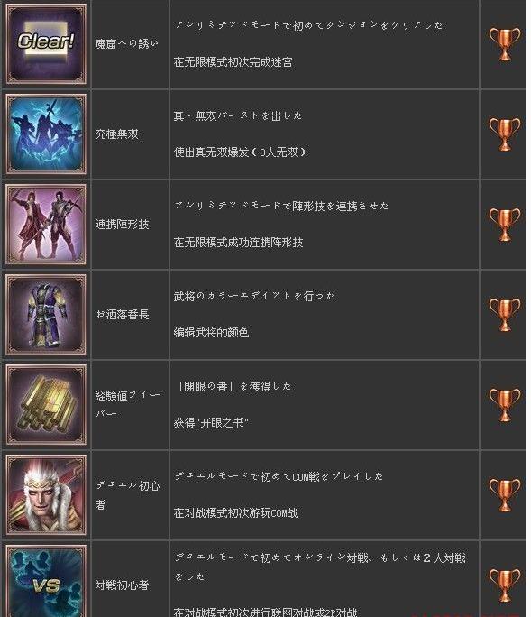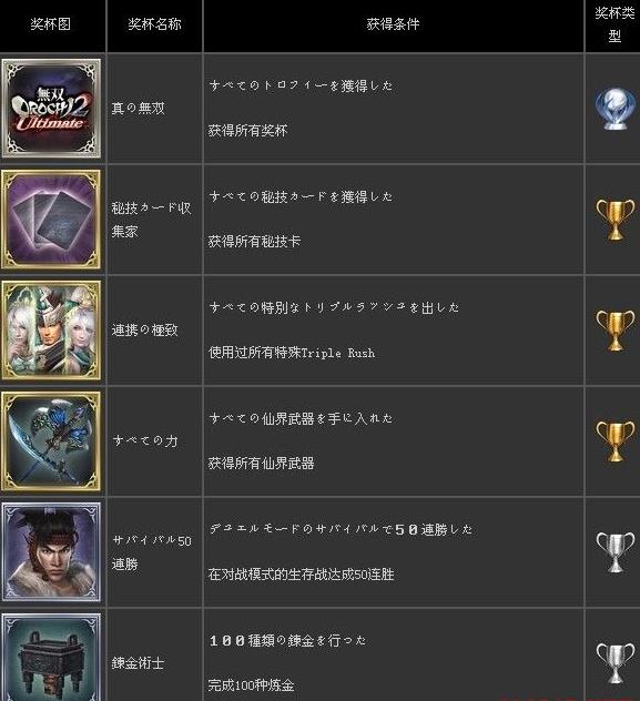 无双大蛇2终极版奖杯列表一览