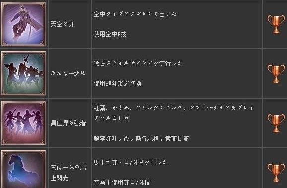 游戏包含多个成就奖杯,涵盖剧情完成、战斗挑战等多个方面。完成特定条件即可解锁相应奖杯。