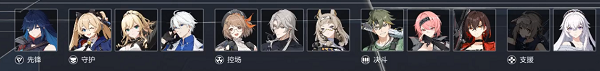 根据武器和技能性能的不同,角色被分为“决斗”“控场”“守护”“支援”“先锋”五大类别。