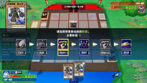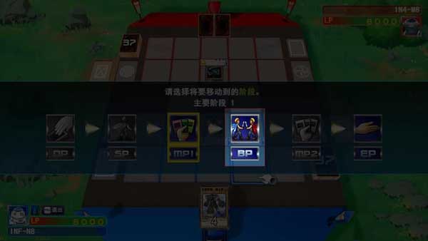 MP1:第一个主阶段,玩家可以在主阶段使用卡牌、调整怪兽、或是使用怪兽、场地效果。