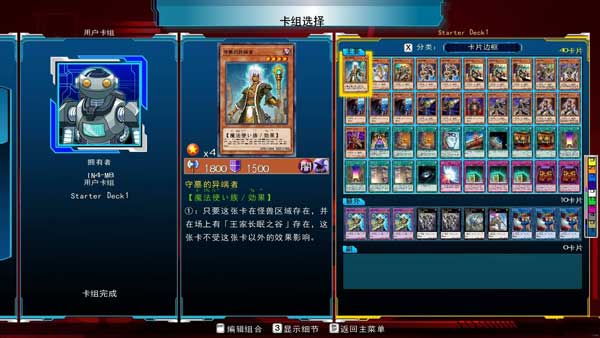 1、卡组编辑界面,有很多快捷键可用。大部分在界面中有提示。