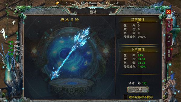 3、前期可使用银币优先提升5级极冰法杖,可提升百分比的受怪减免,毕竟先要站得住才有输出。