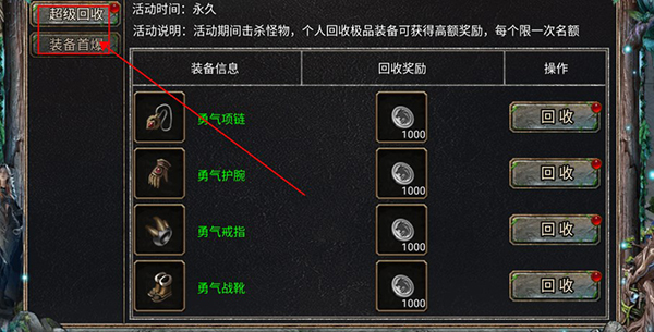 爆出装备可通过右上角活动图标内的超级回收和装备首爆获得大量金币。