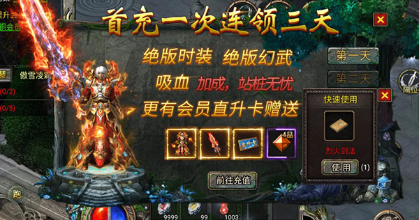 1、平民玩家进入游戏后建议充个8元和30元的档次,不仅可拿到首充双倍的8000金币,还可激活中级吸血光环,既有大额加成,又有吸血属性和半月弯刀技能,群刷怪效率快人一步。