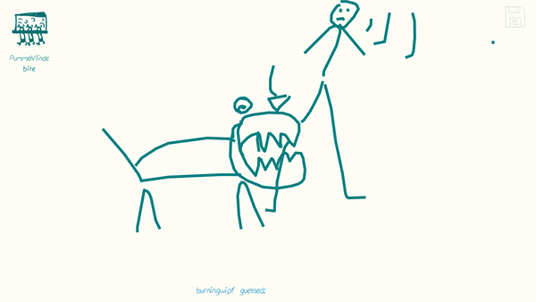 2、第二位玩家根据第一位玩家所画内容,猜测所表达的词汇,然后自己再将这个词画出来。