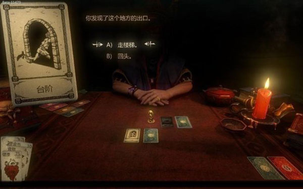 如果遇到台阶,回头则留在当前关卡。走楼梯前进则会进入新的关卡流程。交战卡会重新进行随机选择和放置。