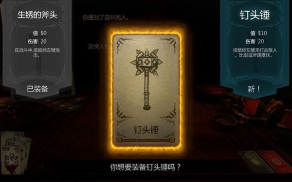 在获取战利品时,会逐张揭示新卡牌作用。如果遇到装备卡,则可以直接点击卡牌进行装备。