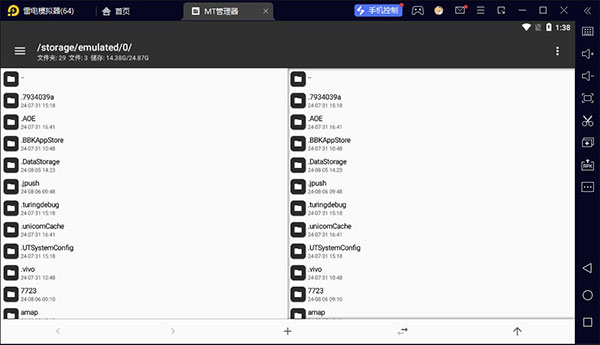 MT管理器电脑版是一款通过安卓模拟器的方式运行于电脑上的APK编辑神器,该版本相比于手机版而言,最显著的一个优点就在于跨平台的使用,从安卓平台转移到了Windows平台,尽管依旧是通过模拟器方式来实现运行的,但可以让用户体验不同平台间的特性。MT管理器电脑版功能强大,拥有独具特色的双窗口文件管理和强大的APK编辑功能,可以让你高效地进行各种文件操作以及修改安卓软件,包括汉化应用、替换资源、修改布局、修改逻辑代码、资源混淆、去除签名校验等,还支持各种ZIP压缩包操作,同时还有强大的搜索功能,支持对文件名及文件内容、大小进行搜索,以及拥有图片查看、音乐播放、字体预览、执行脚本、文本对比等功能,在侧拉栏中可方便地查看存储设备、FTP连接、书签、后台、工具等。此外,MT管理器还保留了原来的双窗口操作方式,新增了许多功能,例如修改了Material Design风格的界面,也支持双窗口等操作能为用户管理提供极大便利,使用起来也更加很方便。这种双窗口文件的操作视图,能为我们复制、剪切等操作带来极大便利,同时布局指南也通过使用相同的视觉元素,结构网格,和通用的行距规则,让app在不同平台与屏幕尺寸上拥有一致的外观和感觉。MT管理器电脑版推出主要是为了给热爱安卓搞机的用户们提供便利,以及作为日常文件管理器使用。
