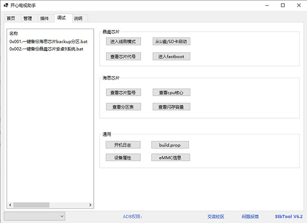 3、支持自定义加载bat批处理、py脚本等插件,比如免拆批量刷盒子,一键备份机顶盒系统固件。