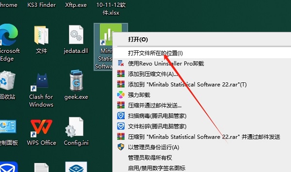 8、在电脑桌面找到Minitab 22软件,鼠标右键打开文件所在的位置进去就是安装目录位置了