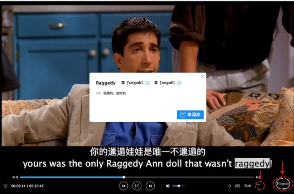 5)、配合糍粑看美剧学英语视频播放器,随时添加生词卡片。