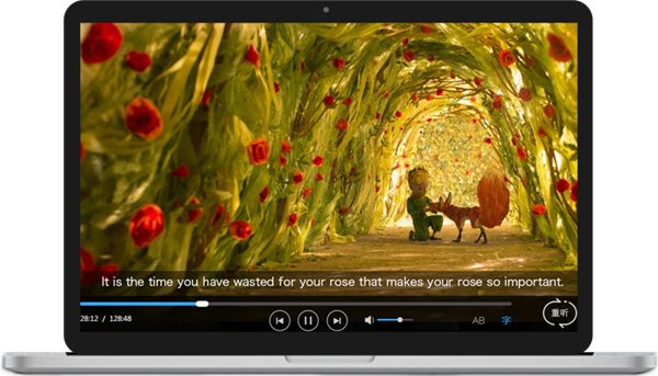 1、专为英语学习设计的视频播放器:1)、播放本地视频,支持在线匹配字幕和手动加载本地字幕;