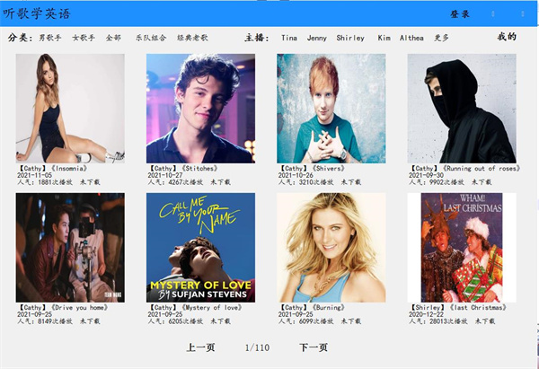 3、听歌独家签约美女主播,口语地道,发音纯正,听歌之余学习语法词汇,学习听歌两不误。