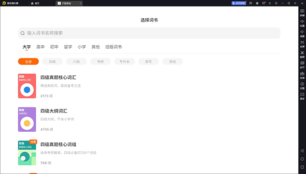 不背单词电脑版是需要借助模拟器在电脑上运行的一款英语学习软件。软件注重真实语境学习,通过丰富的有声例句库,让用户可以身临其境,了解单词在实际语境中的用法和搭配,从而更加科学、高效地掌握单词。不背单词电脑版提供了一站式的英语学习方案,包括英语备考、日常英语学习、单词拼写等,都有着个性化、系统化的学习方式,实现英语学习的科学化和高效化,帮助用户更好地理解和运用英语这门语言。有在学习英语的小伙伴不要错过哦,可以到本站下载体验一下!