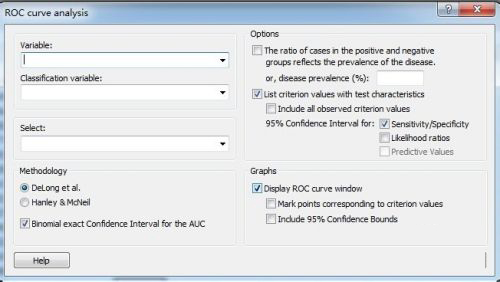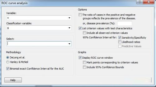 3、点击“Statistics”-“ROC curve”-"ROC curve analysis...“,弹出界面。