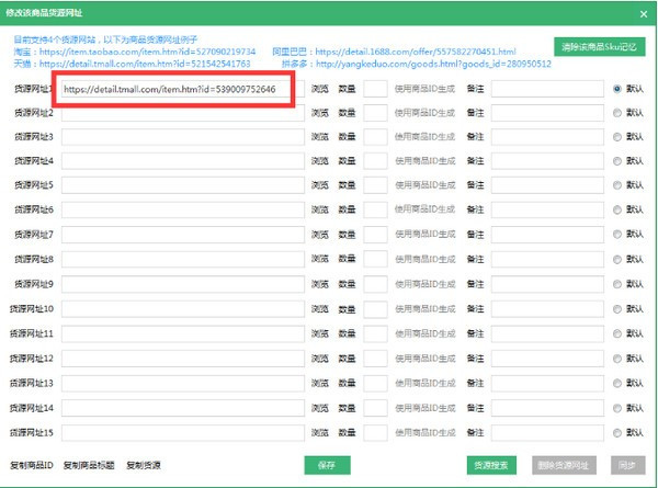 没有识别到的请手动保存货源网址(货源网址是商品网址)