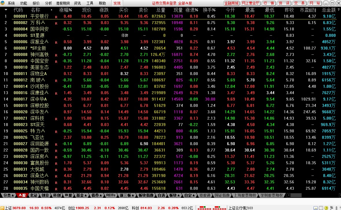 答:按F3或F4后,在右下角选择"值",里面有统计信息,若想看整个沪深市场的情况,找到沪深300指数,在它画面右下角的"值"中有整个沪深市场的情况