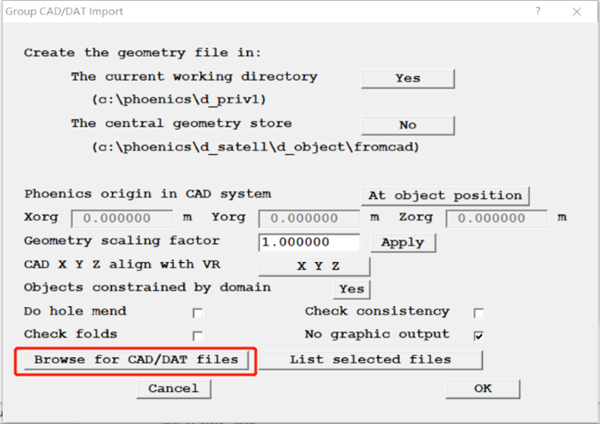 选择打开Import CAD Group(导入CAD组件),弹出对话框,点击“Browse for cad/dat files”,找到所建的STL文件,最好英文命名,存在英文路径,点击“ok”。