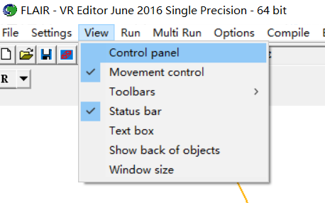 点击菜单栏的【File】-START NEW CASE-FALIR-OK,打开菜单栏【View】-Control panel,即可出现VR Editor快捷菜单,单击Obj菜单。